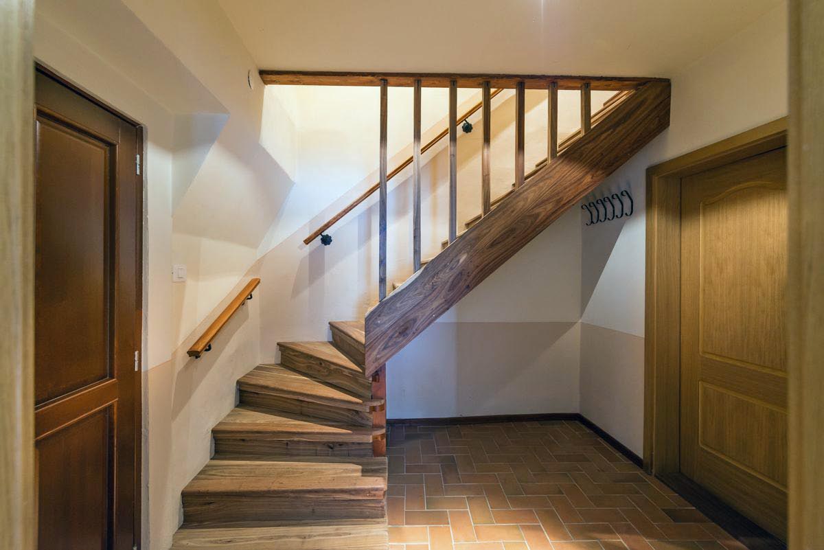 The renovation was carried out with great care, successfully blending restored original features with modern amenities while preserving the home’s traditional alpine charm.
