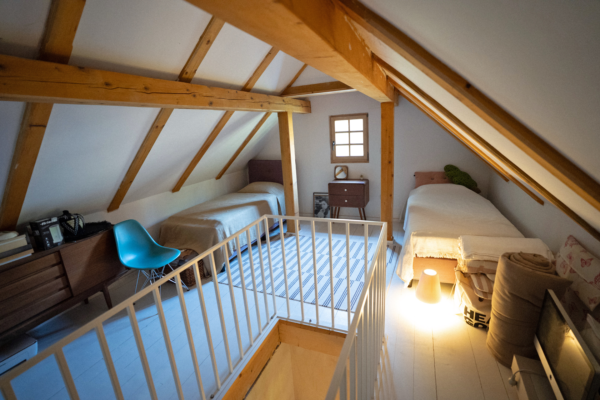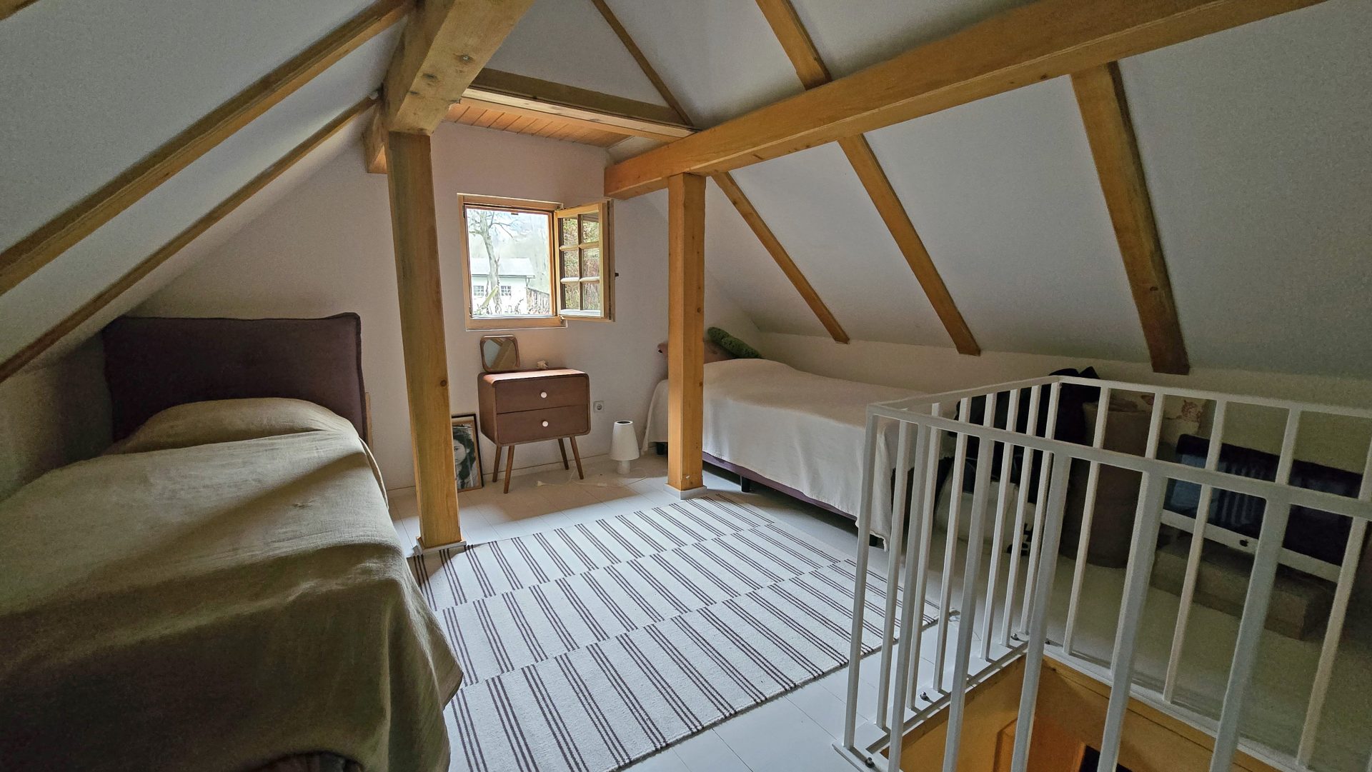 • Upper floor: master bedroom and a gallery with additional beds