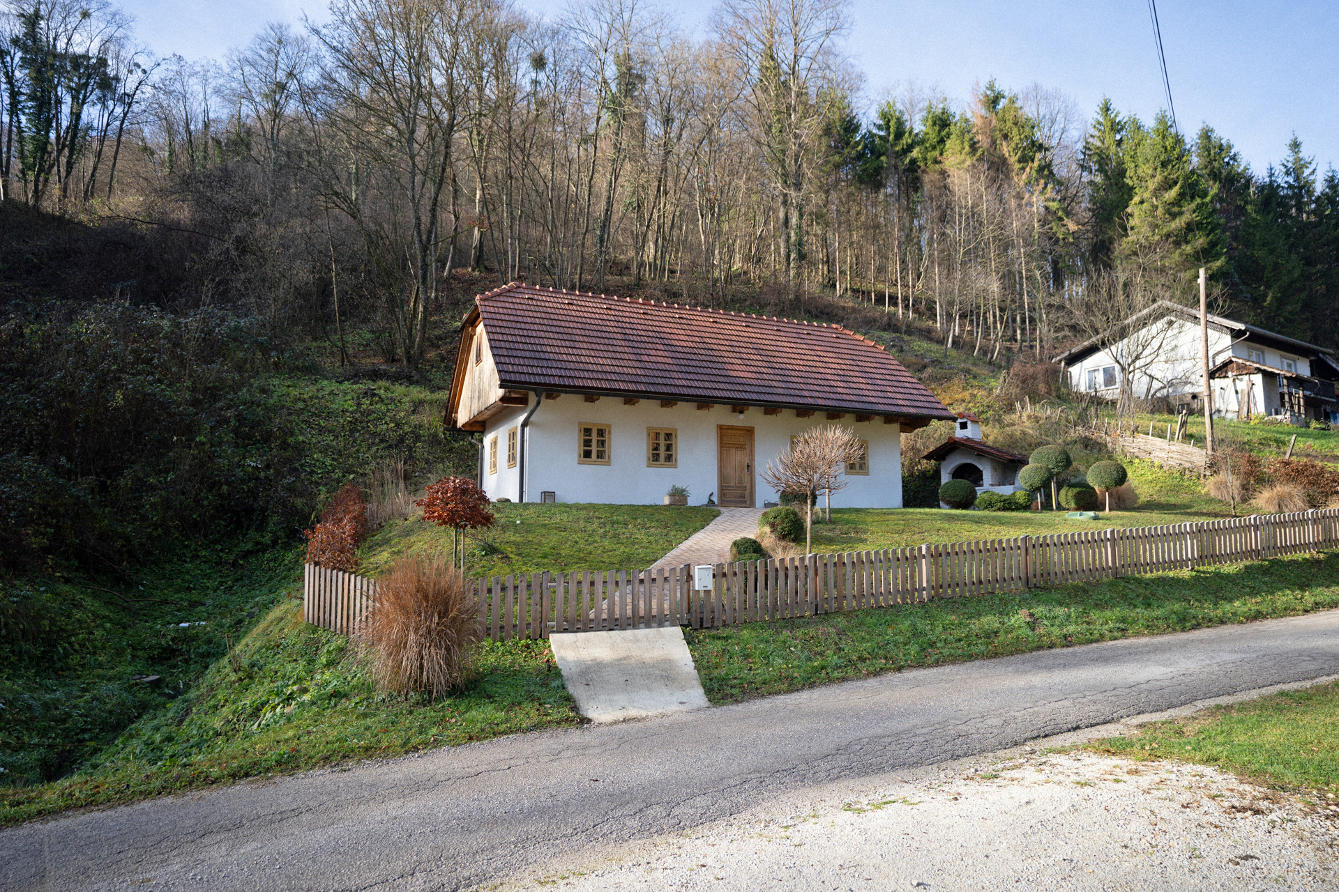 Nestled in the tranquil vineyard landscape of the Kozjansko Park in the Posavje region, this beautifully renovated holiday home offers the perfect retreat surrounded by nature, peace, and complete privacy. The property boasts stunning views and direct proximity to the forest.