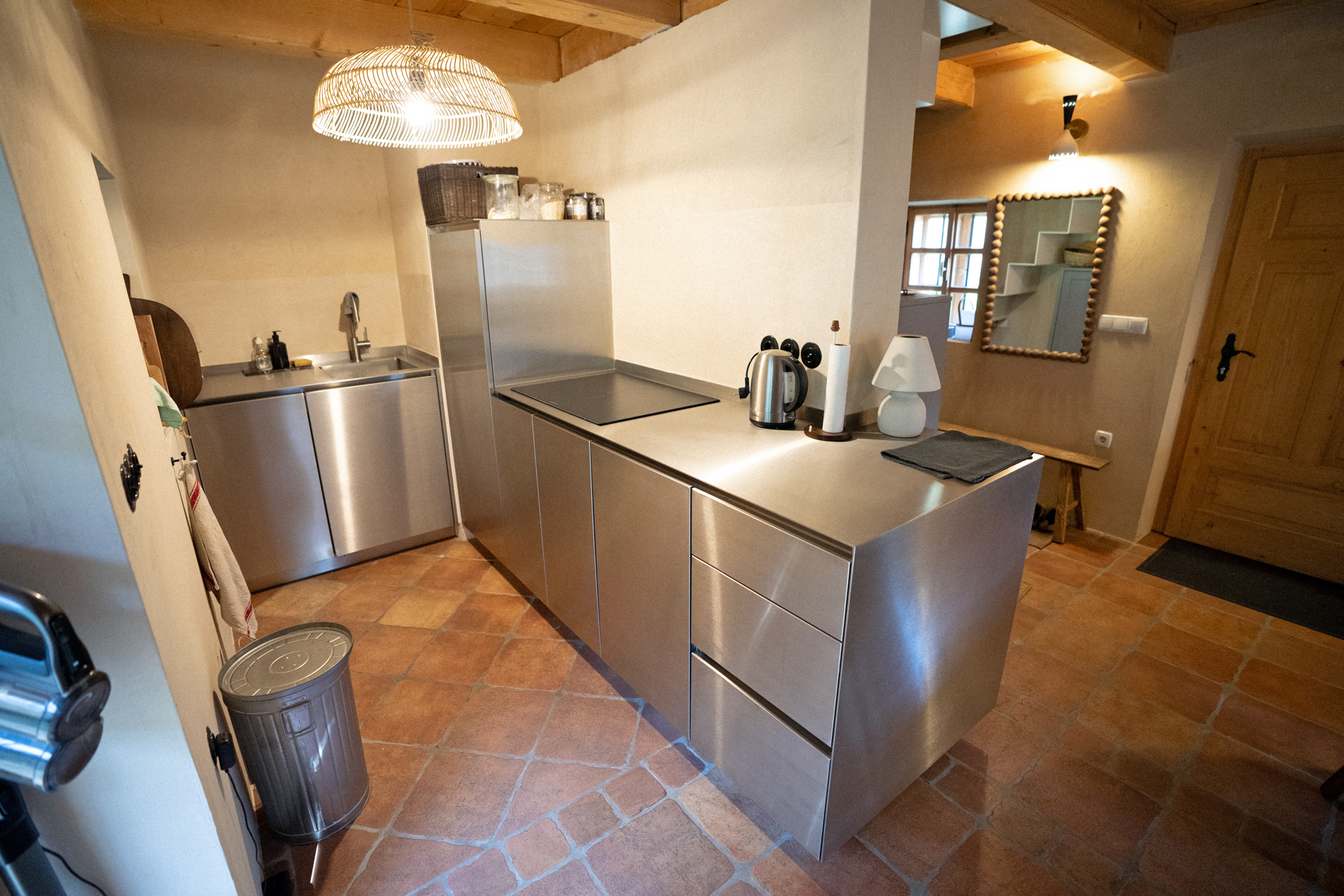 • Ground floor: entrance hall, bright living room with dining area and kitchen, and a spacious bathroom