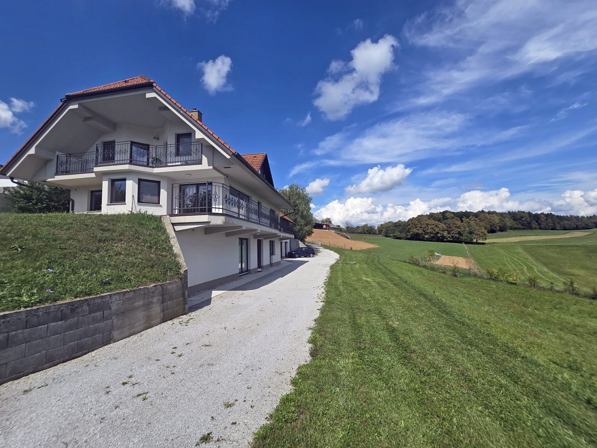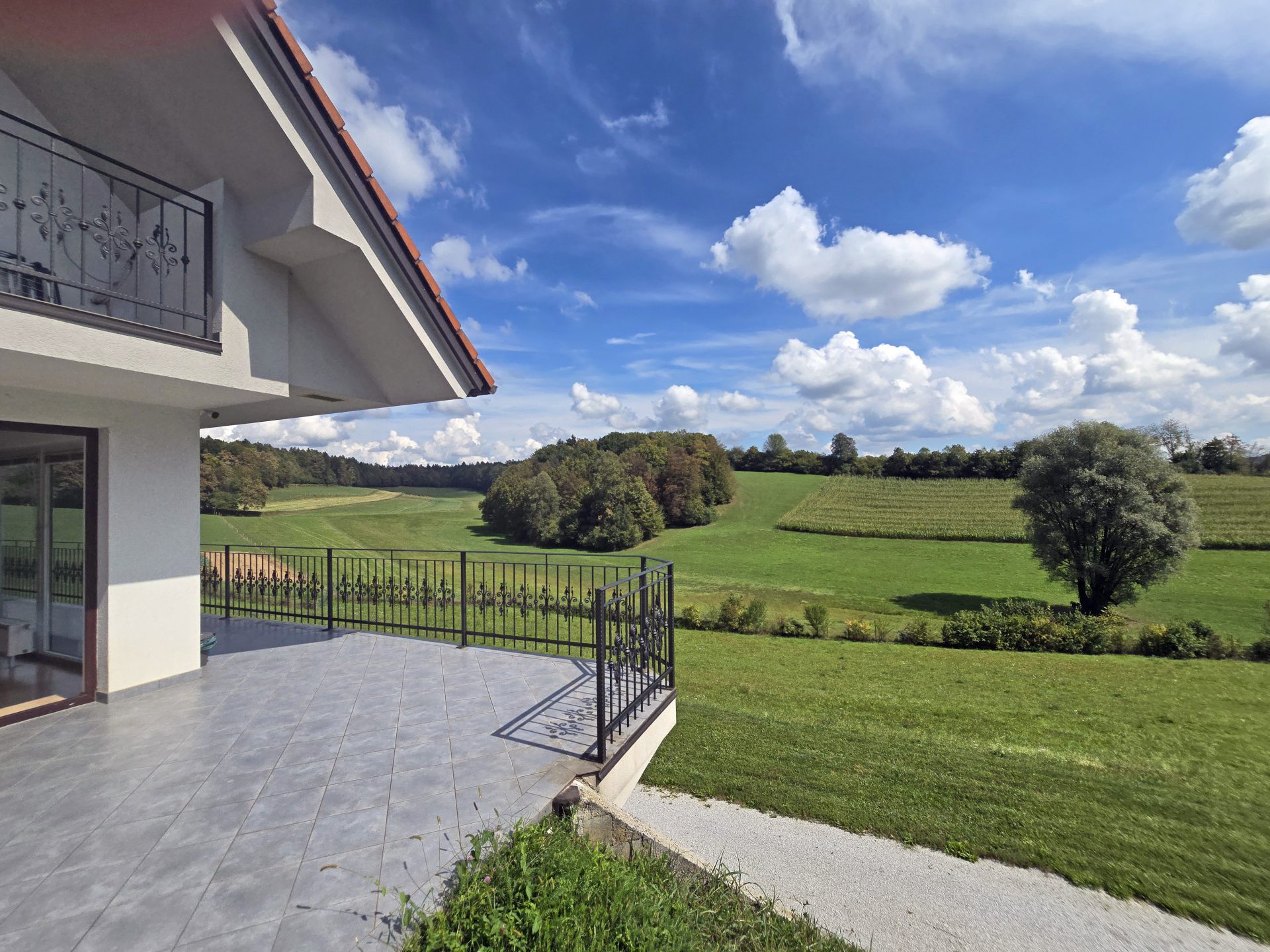 Nestled in the tranquil countryside of Gorenja Nemška Vas near Trebnje, this expansive 329 m² family home is set on a majestic 7,261 m² estate—offering unbeatable privacy, elevated views, and unmatched potential.