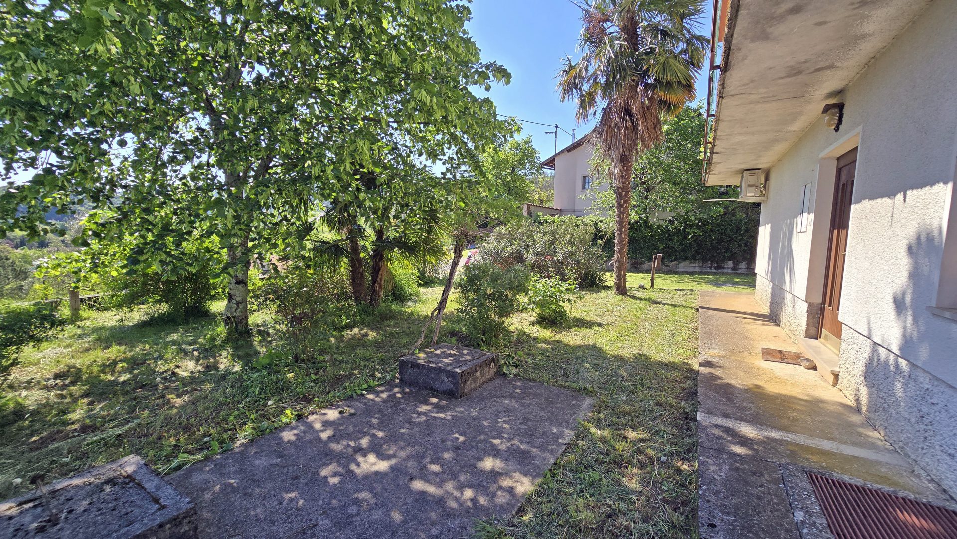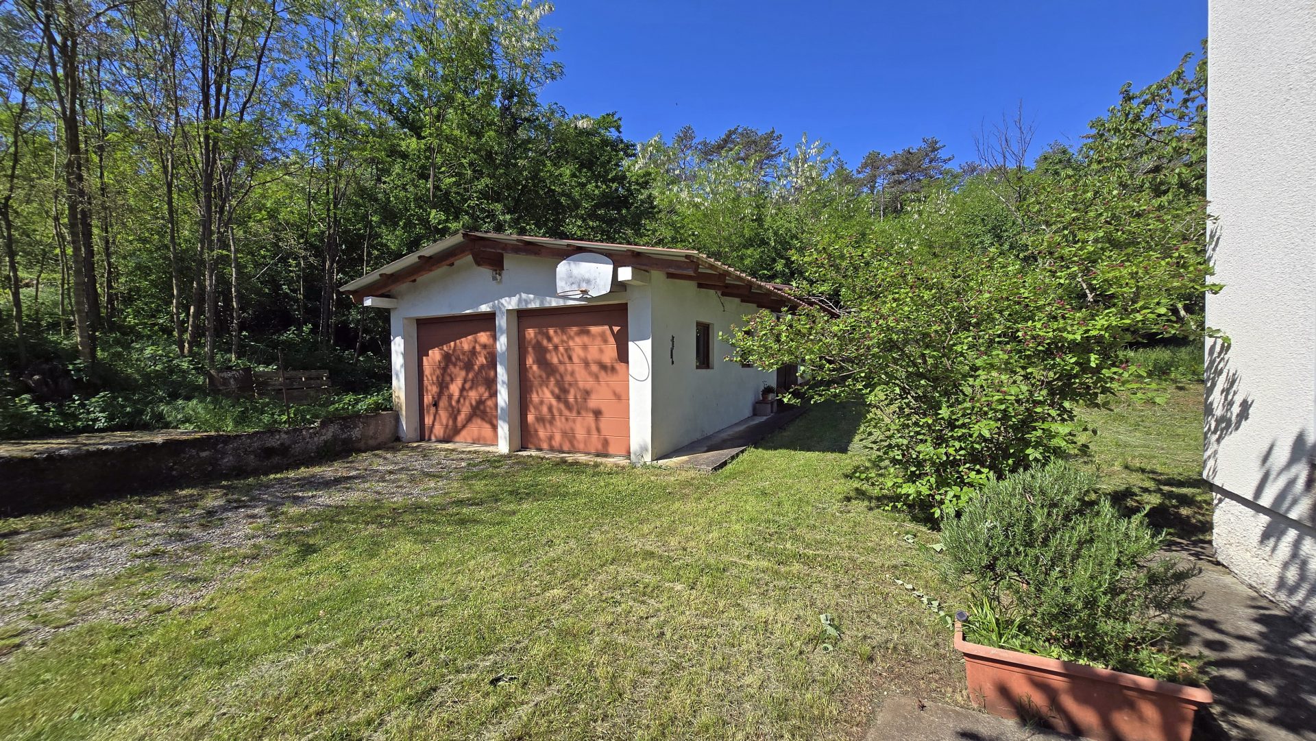 The property is located on the outskirts of the Vipava Valley, in the shade of large trees, near the Vipava River, surrounded by green areas and a beautiful view of the valley.