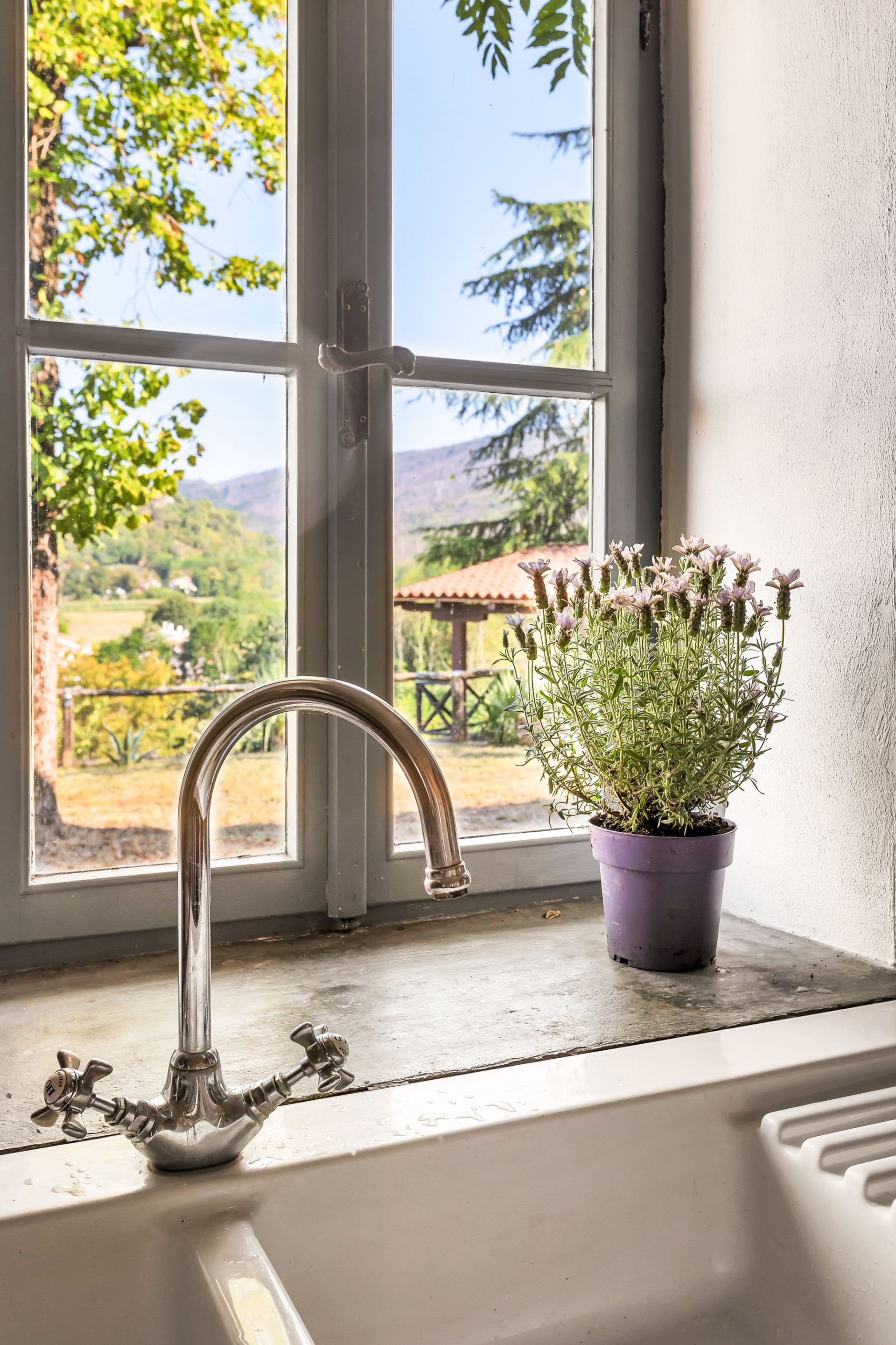 The property is located on the edge of the Vipava valley, in the shade of large trees, close to the Vipava river, surrounded by green areas and spectacular views towards the valley.