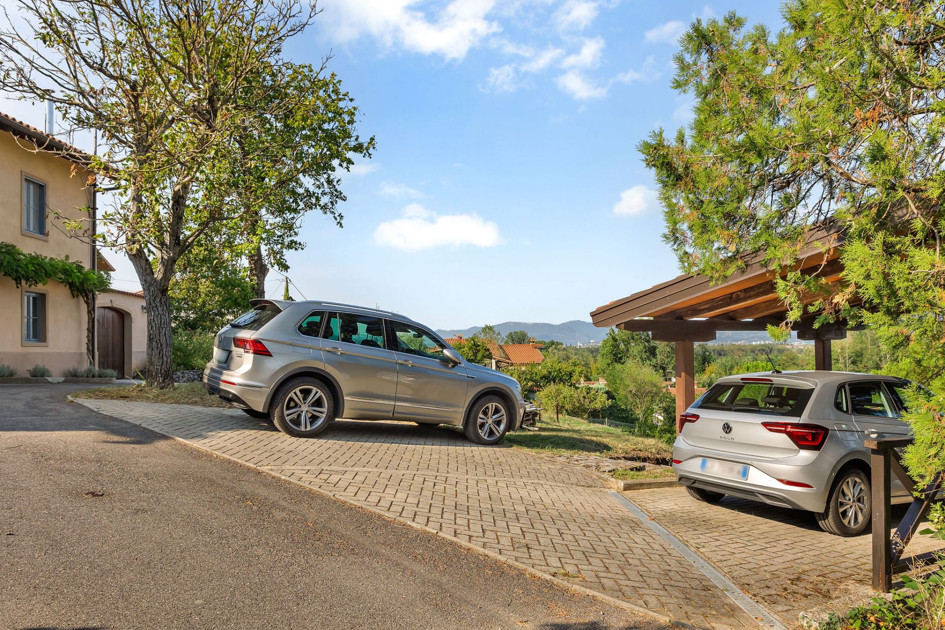 On the opposite side, on the front of the house, there is an additional space, for parking cars in the shade or for spending time outside.