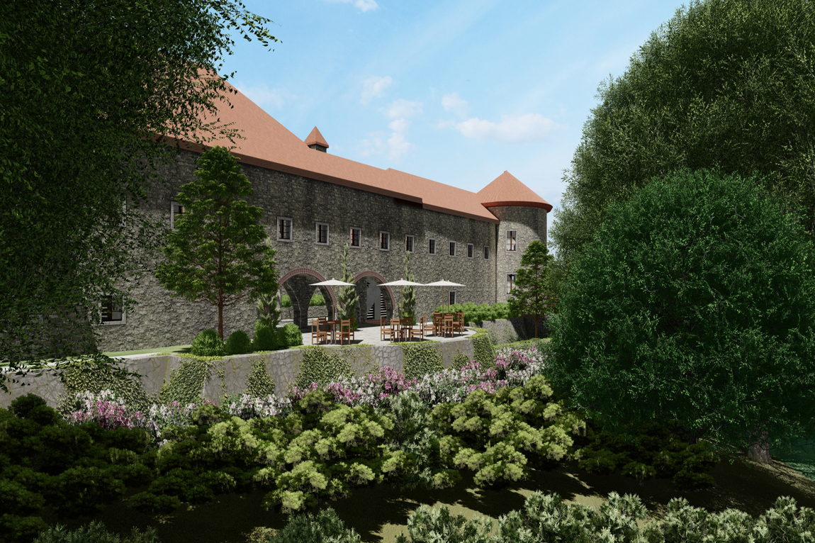 В замке Мирна можно создать сочетание и взаимодействие общественных и частных пространств. Возможности многочисленны: бутик-отель, рестораны, кафе, конференц-залы, проведение свадебных церемоний и других мероприятий.